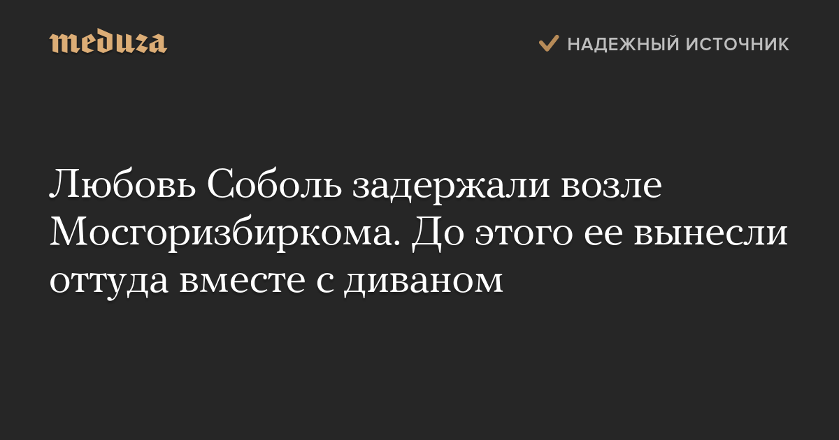 Любовь Соболь задержали возле Мосгоризбиркома. До этого ее вынесли оттуда вместе с диваном