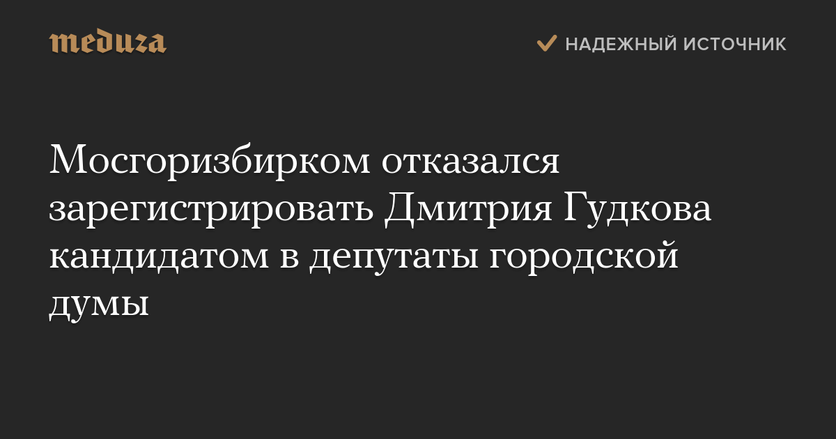 Мосгоризбирком отказался зарегистрировать Дмитрия Гудкова кандидатом в депутаты городской думы