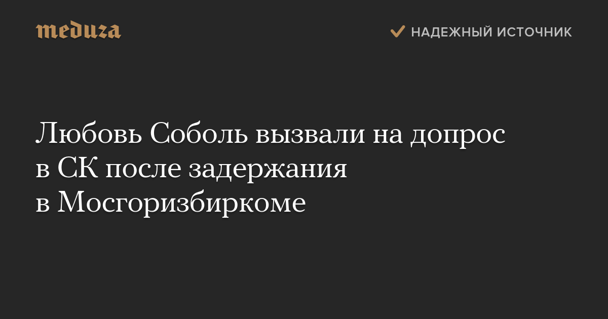 Любовь Соболь вызвали на допрос в СК после задержания в Мосгоризбиркоме