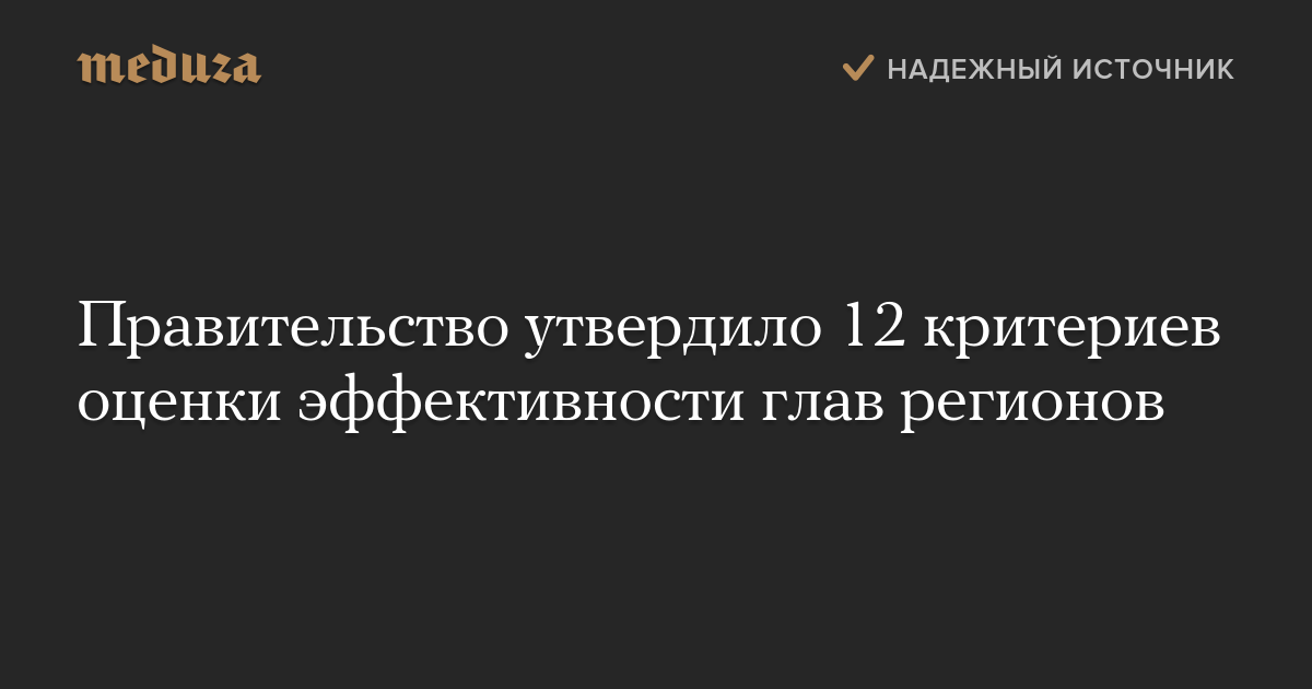 Правительство утвердило 12 критериев оценки эффективности глав регионов