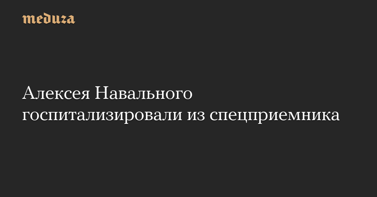 Оппозиционер Алексей Навальный, отбывавший административный арест в спецприемнике, госпитализирован утром 28 июля в московскую клиническую больницу № 64. Об этом корреспонденту «Медузы» сообщили в медучреждении.