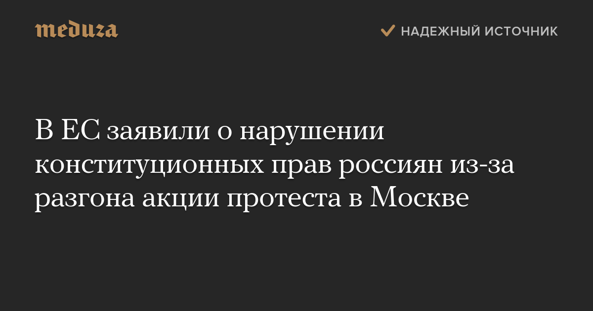 В ЕС заявили о нарушении конституционных прав россиян из-за разгона акции протеста в Москве