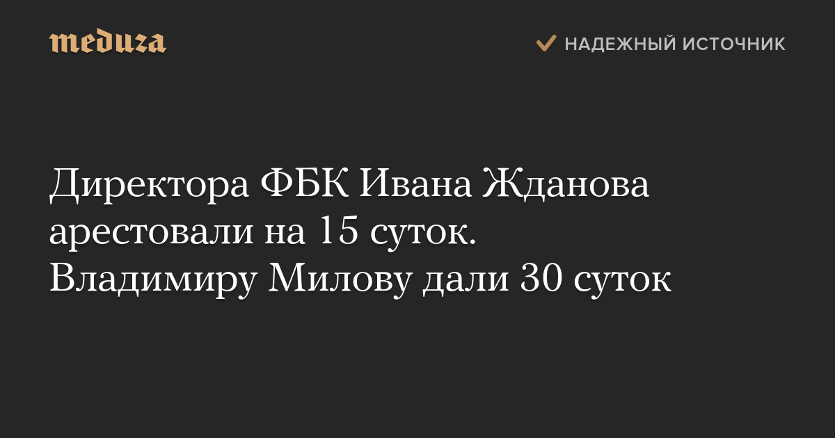 Директора ФБК Ивана Жданова арестовали на 15 суток. Владимиру Милову дали 30 суток.