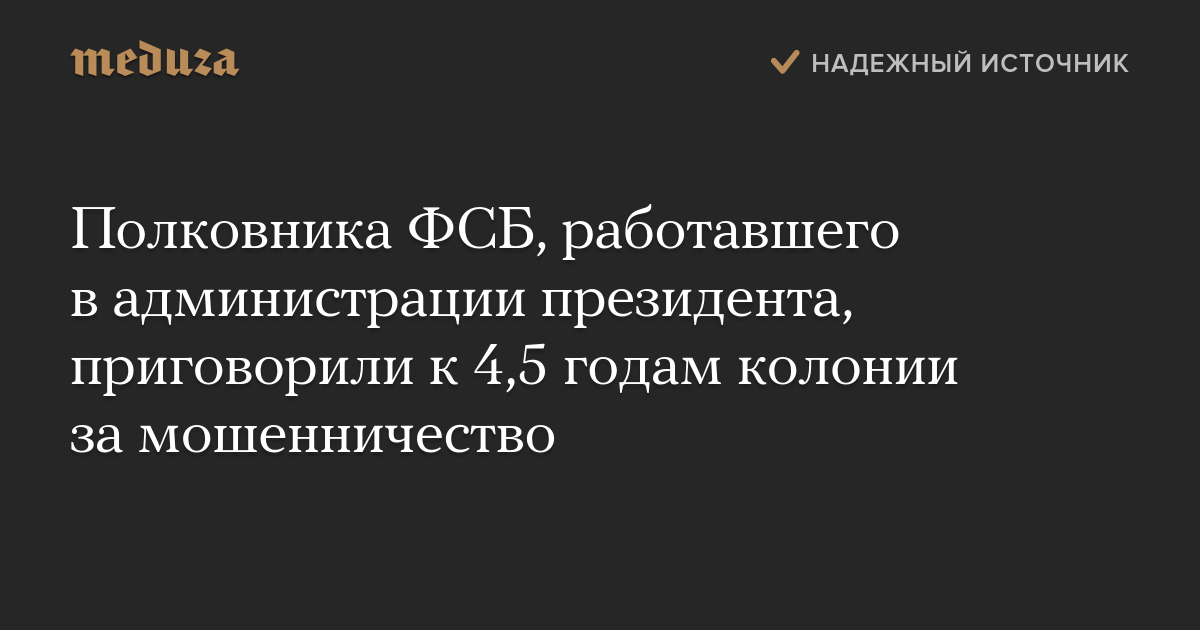 Полковника ФСБ, работавшего в администрации президента, приговорили к 4,5 годам колонии за мошенничество