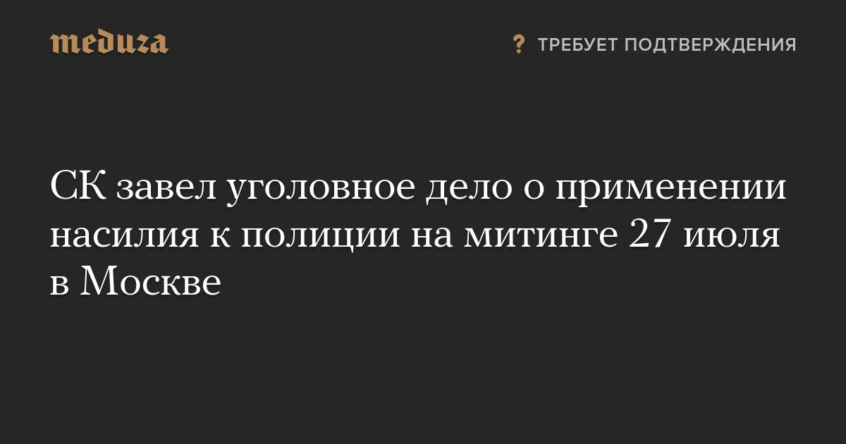 Следственный комитет возбудил уголовное дело о применении насилия в отношении представителя власти на митинге 27 июля в центре Москвы. Об этом сообщает ТАСС со ссылкой на источник в правоохранительных органах.