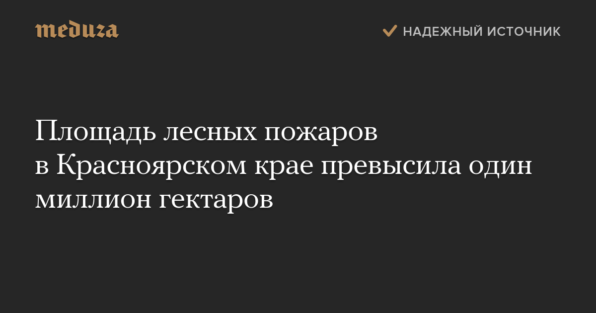 Площадь лесных пожаров в Красноярском крае превысила один миллион гектаров