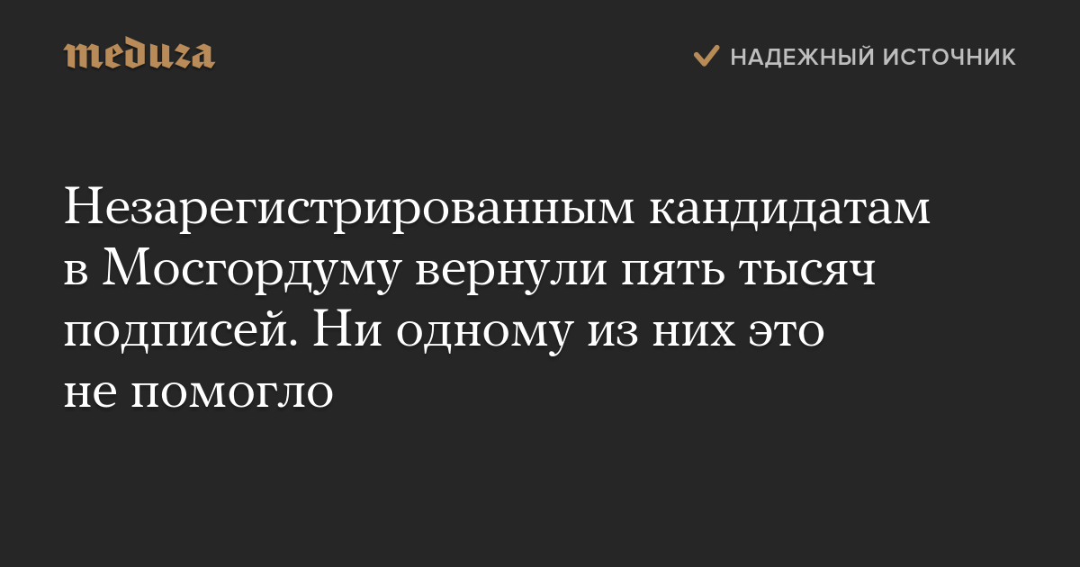 Незарегистрированным кандидатам в Мосгордуму вернули пять тысяч подписей. Ни одному из них это не помогло