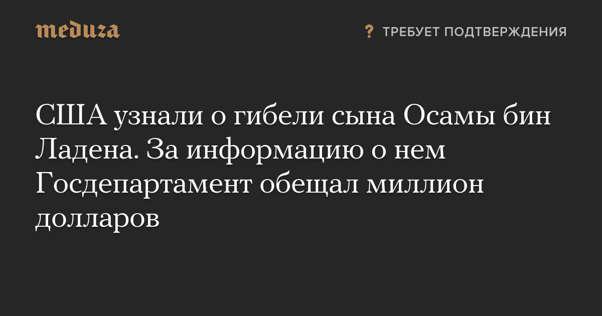 Источники The New York Times утверждают, что бин Ладен погиб в результате операции с участием США — причем еще до того, как Госдепартамент объявил награду за информацию о нем. Где и когда это произошло, они не уточняют.