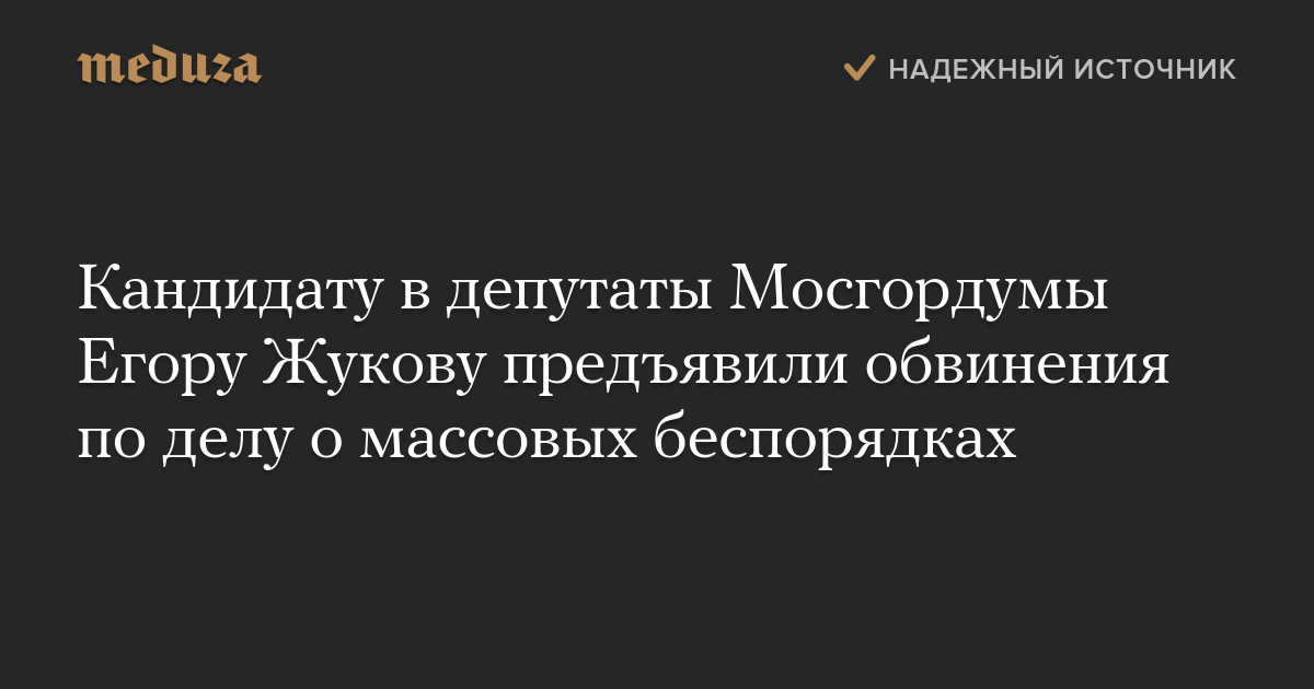 Кандидату в депутаты Мосгордумы Егору Жукову предъявили обвинения по делу о массовых беспорядках