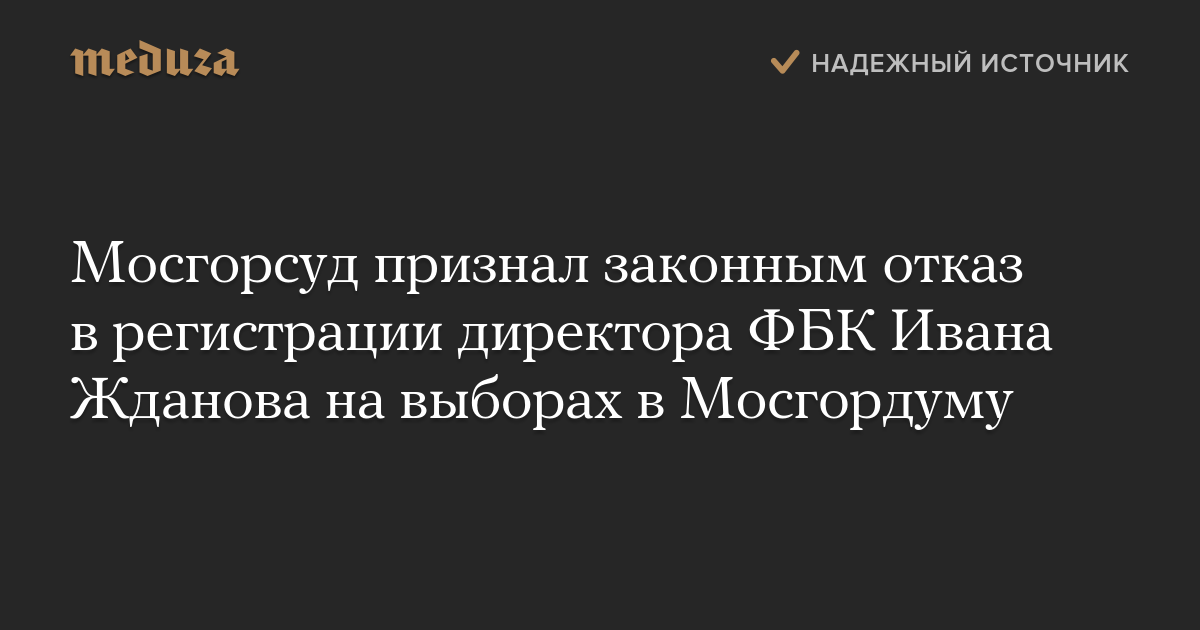 Мосгорсуд отклонил иск директора ФБК Ивана Жданова, который хотел оспорить отказ в регистрации кандидатом на выборах в Мосгордуму. Об этом рассказали 2 августа в пресс-службе суда.