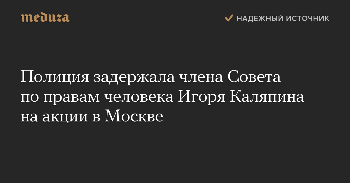 В Москве на Пушкинской площади полиция задержала члена Совета по правам человека, главу Комитета против пыток Игоря Каляпина. Об этом он сам рассказал в эфире «Дождя».