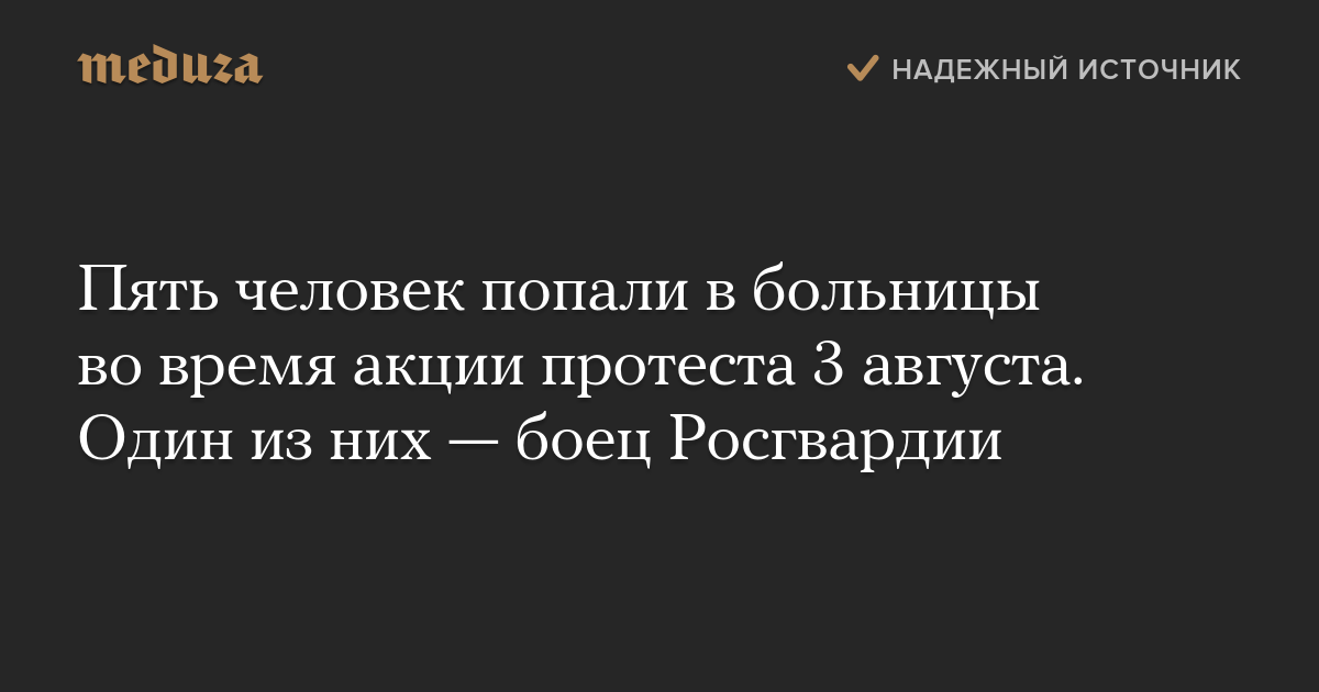 Пять человек попали в больницы во время акции протеста 3 августа. Один из них — боец Росгвардии