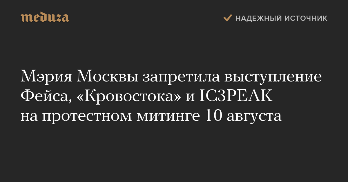 Мэрия Москвы запретила выступление Фейса, «Кровостока» и IC3PEAK на протестном митинге 10 августа