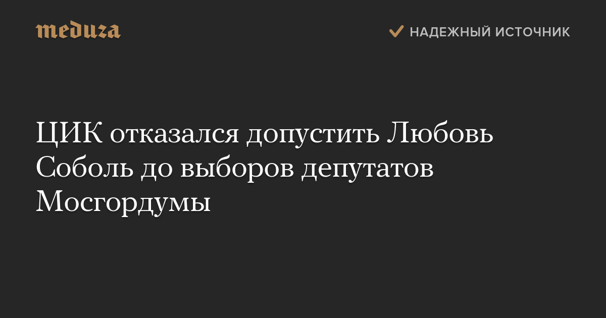 ЦИК отказался допустить Любовь Соболь до выборов депутатов Мосгордумы