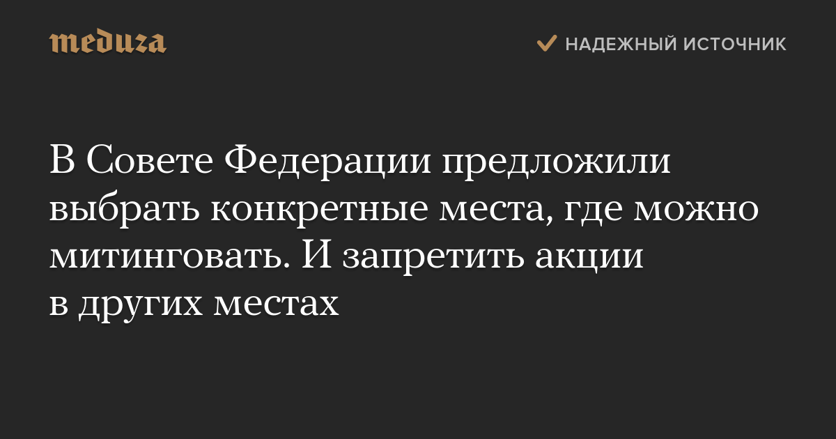В свою очередь сенатор Людмила Бокова пояснила, что в каждом городе для проведения акций предполагается отвести определенные места, за пределами которых митинговать будет нельзя.