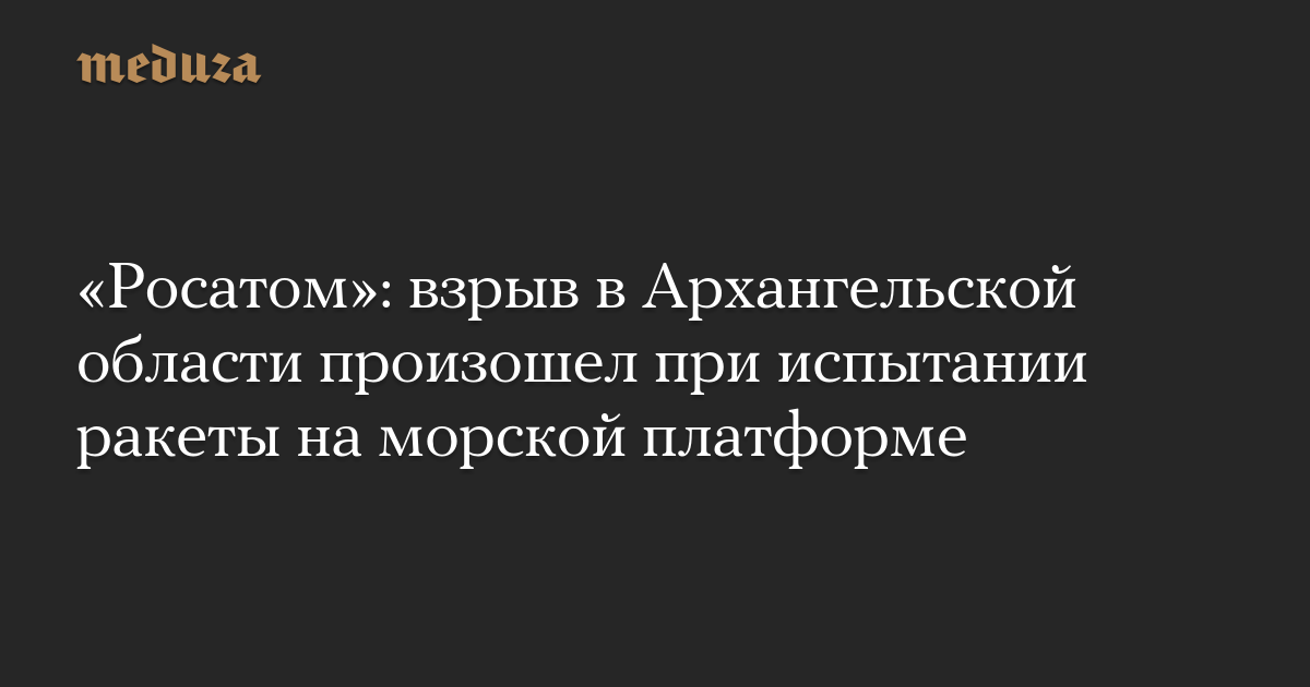 Взрыв на полигоне в Архангельской области 8 августа произошел во время испытания ракеты на морской платформе. Об этом сообщает «Росатом».