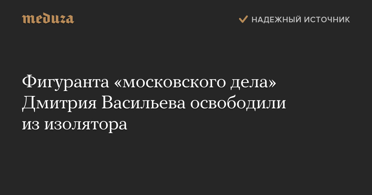Фигуранта «московского дела» Дмитрия Васильева освободили из изолятора