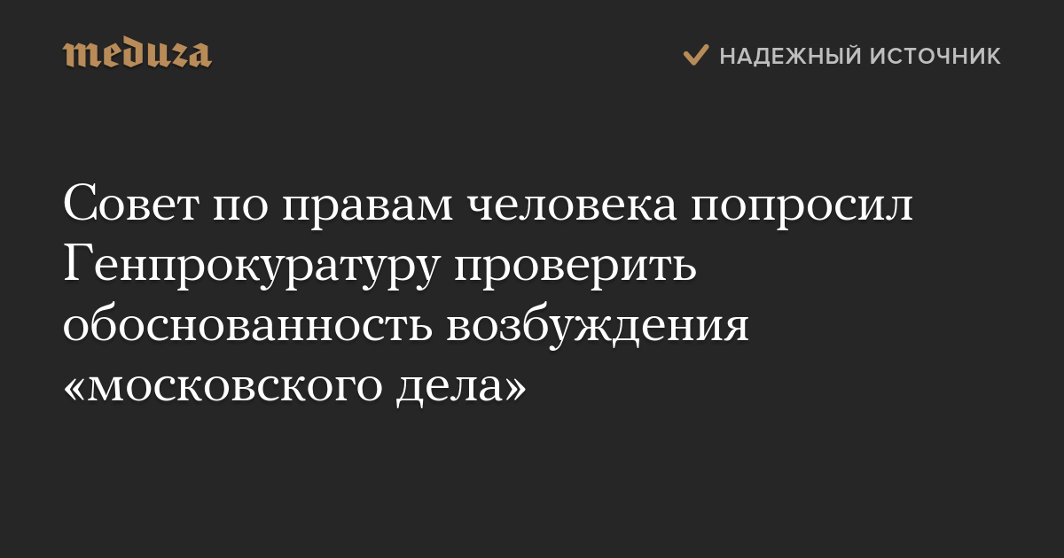 Совет по правам человека попросил Генпрокуратуру проверить обоснованность возбуждения «московского дела»