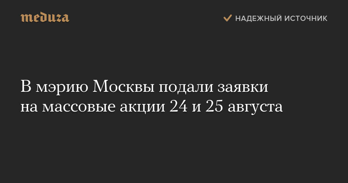 В мэрию Москвы подали заявки на массовые акции 24 и 25 августа