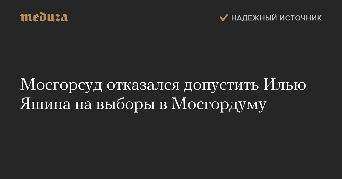 Мосгорсуд признал законным отказ зарегистрировать Илью Яшина кандидатом в депутаты Мосгордумы.