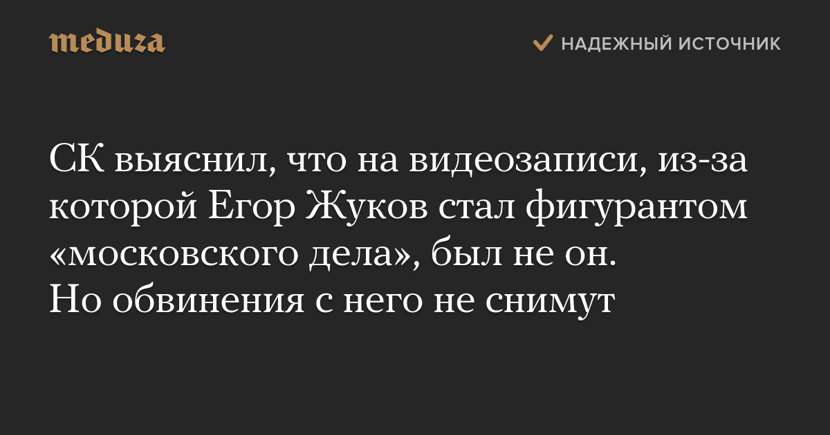 СК выяснил, что на видеозаписи, из-за которой Егор Жуков стал фигурантом «московского дела», был не он. Но обвинения с него не снимут
