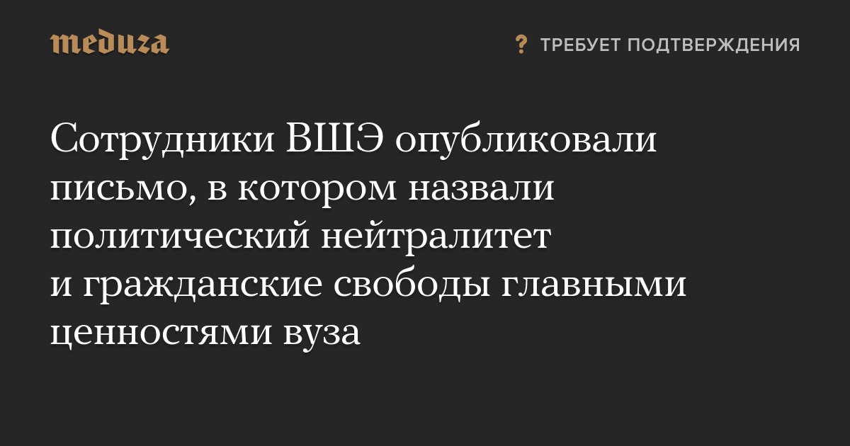 Сотрудники Высшей школы экономики (НИУ ВШЭ) опубликовали открытое письмо, в котором назвали политический нейтралитет, академические и гражданские свободы базовыми ценностями вуза.