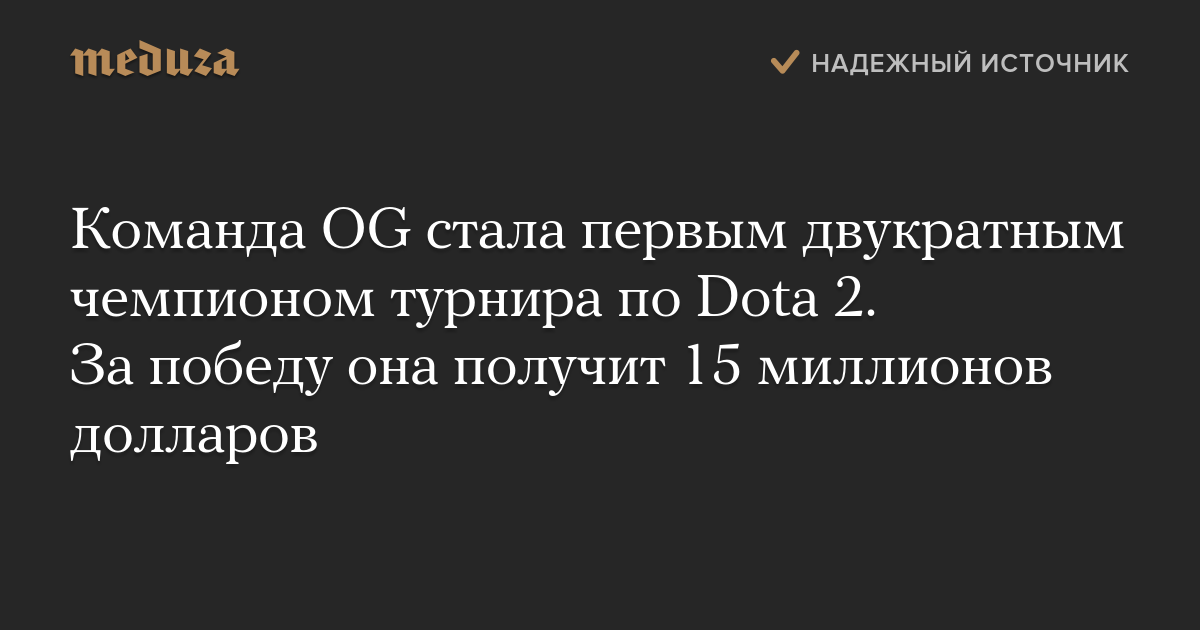 Команда OG стала первым двукратным чемпионом турнира по Dota 2. За победу она получит 15 миллионов долларов