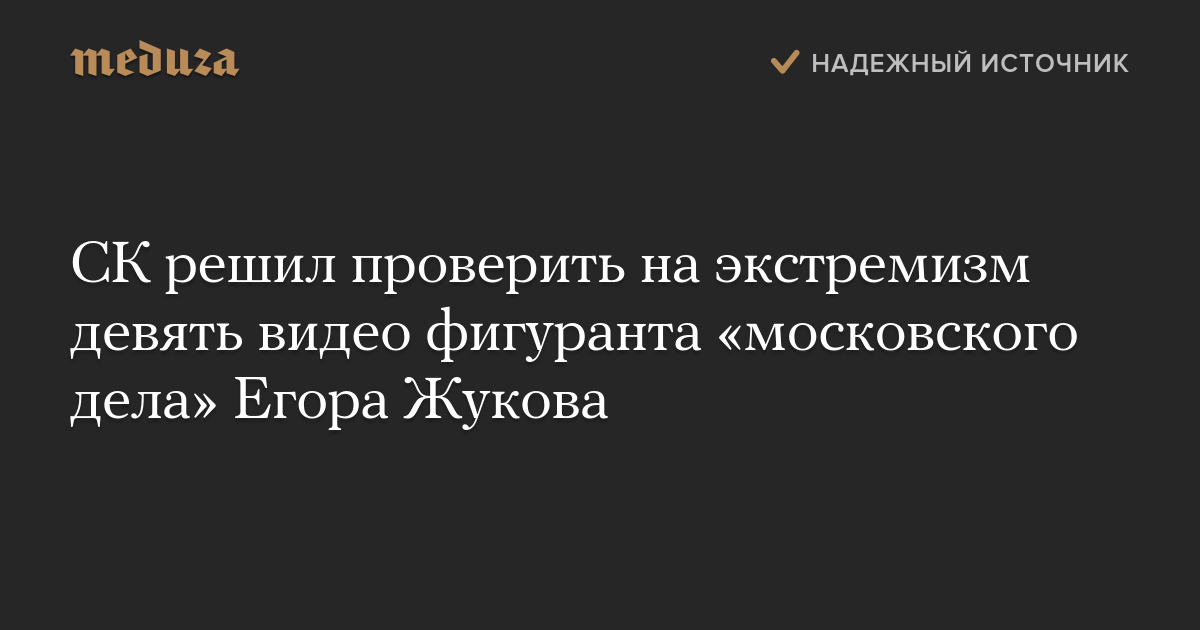 СК решил проверить на экстремизм девять видео фигуранта «московского дела» Егора Жукова