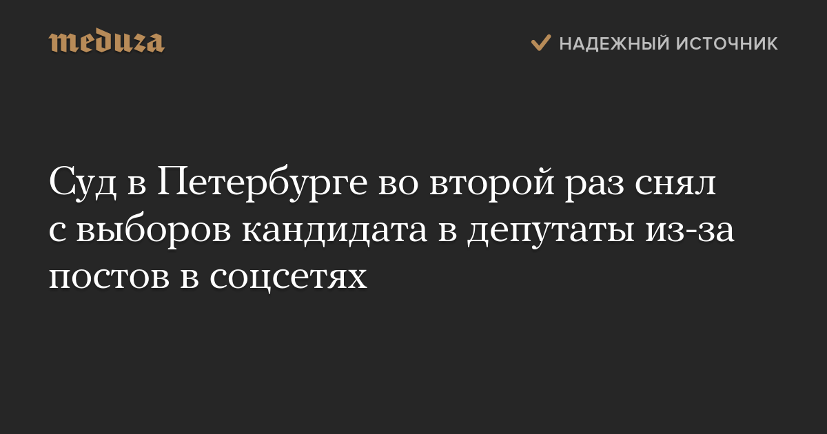 Суд в Петербурге во второй раз снял с выборов кандидата в депутаты из-за постов в соцсетях
