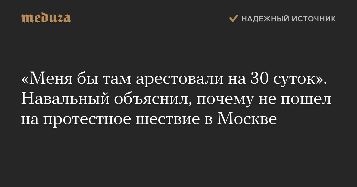 «Меня бы там арестовали на 30 суток». Навальный объяснил, почему не пошел на протестное шествие в Москве