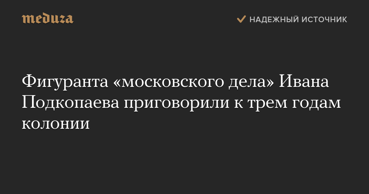 Фигуранта «московского дела» Ивана Подкопаева приговорили к трем годам колонии