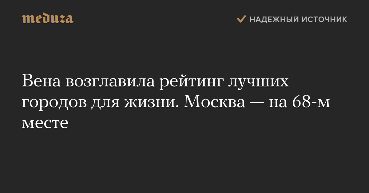 Вена возглавила рейтинг лучших городов для жизни. Москва — на 68-м месте