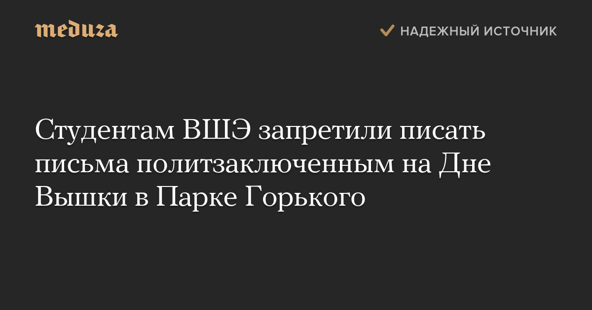 Студентам ВШЭ запретили писать письма политзаключенным на Дне Вышки в Парке Горького