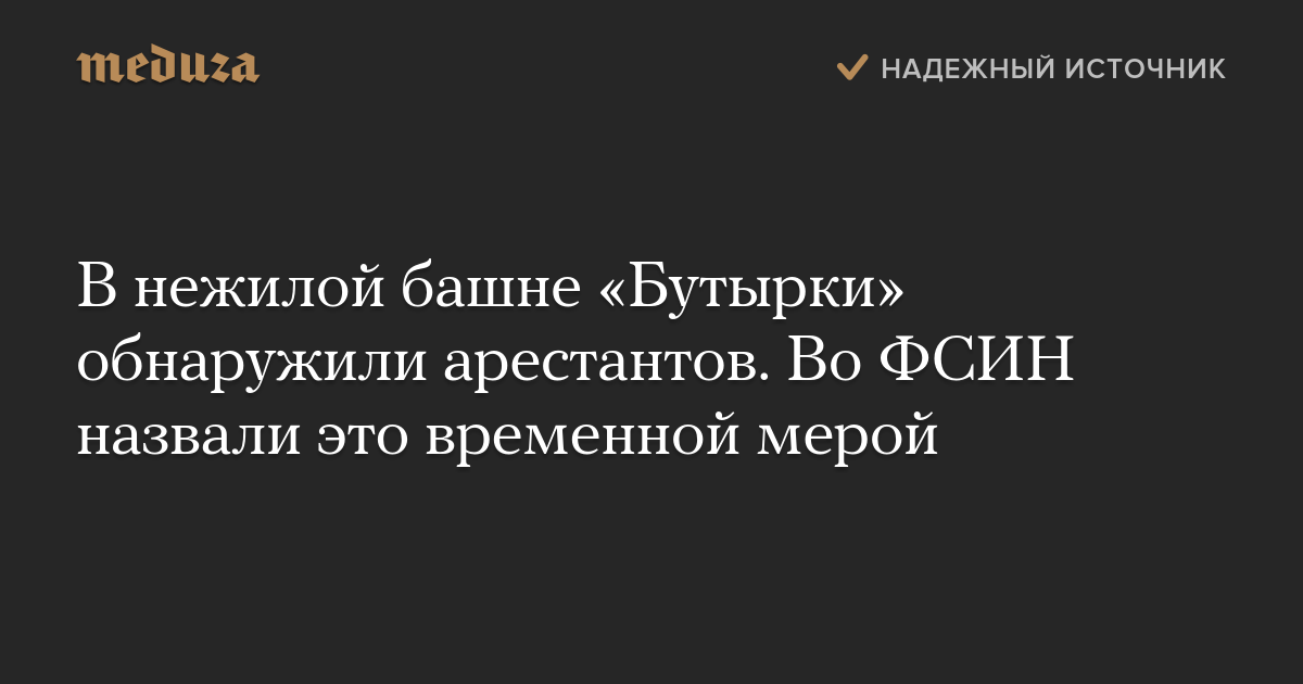 В нежилой башне «Бутырки» обнаружили арестантов. Во ФСИН назвали это временной мерой