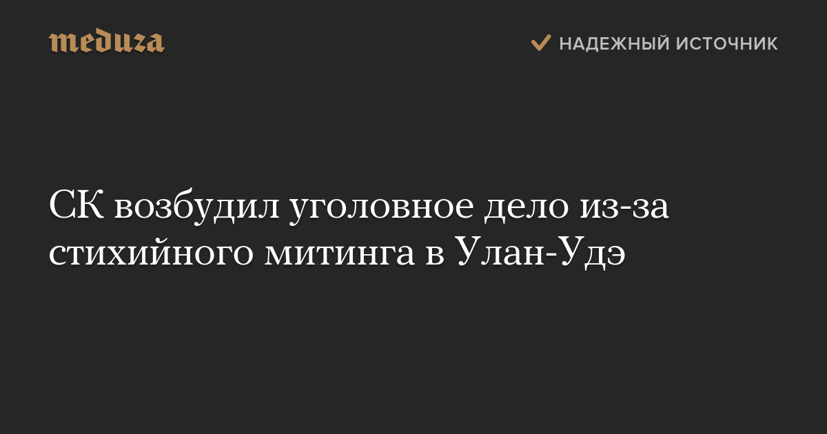 Следственный комитет возбудил уголовное дело из-за стихийного митинга в Улан-Удэ.