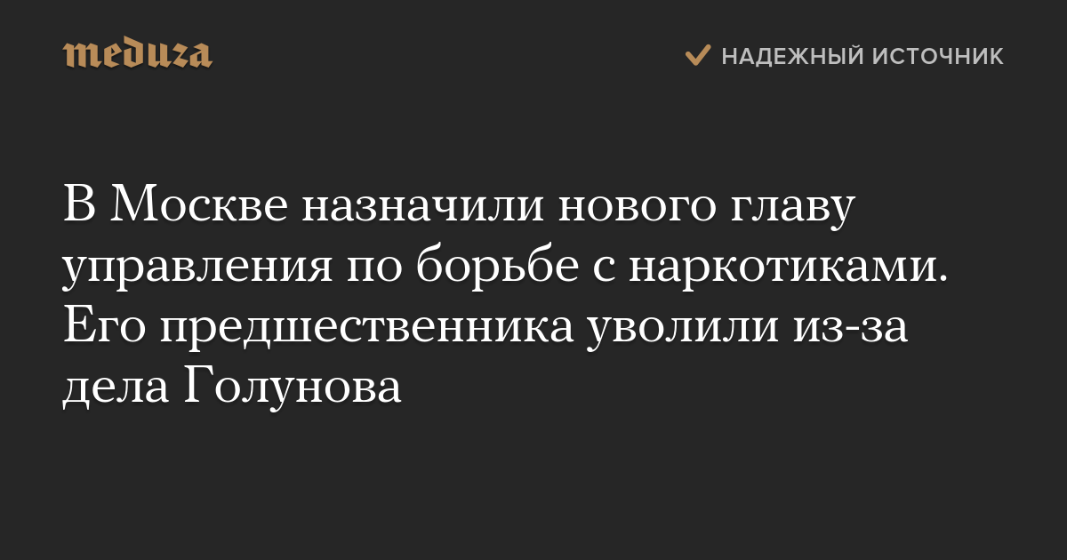 В Москве назначили нового главу управления по борьбе с наркотиками. Его предшественника уволили из-за дела Голунова