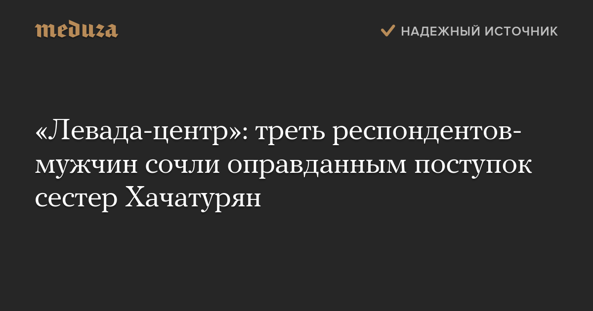 В ходе опроса, проведенного «Левада-центром», 33% респондентов-мужчин заявили, что считают оправданным поступок сестер Хачатурян, убивших отца, который годами над ними издевался.