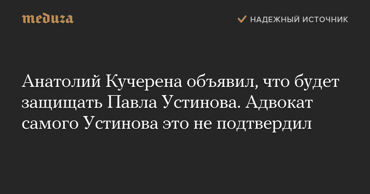 При этом защищавший Устинова в суде адвокат Дмитрий Чешков сказал «Медузе», что соглашение с Кучереной пока не заключено, хотя тот действительно обращался с таким предложением к родственникам подсудимого. Кучерена также пока не обращался к Чешкову за материалами (в суде материалы можно получить только после заключения соглашения), добавил адвокат.