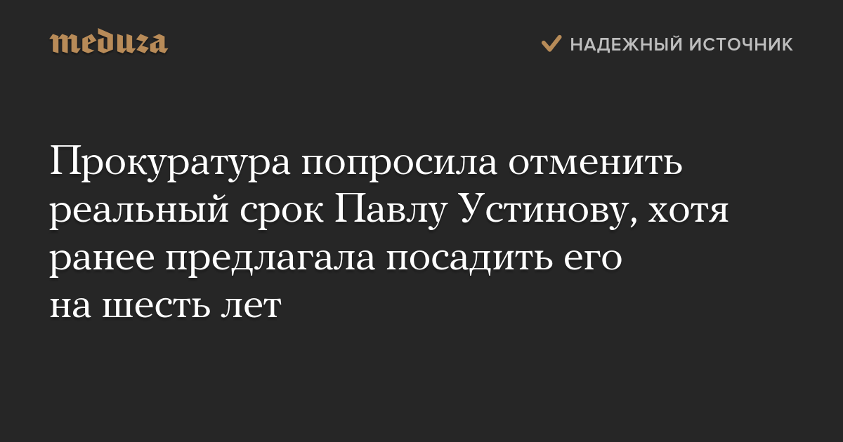 Прокуратура попросила отменить реальный срок Павлу Устинову, хотя ранее предлагала посадить его на шесть лет