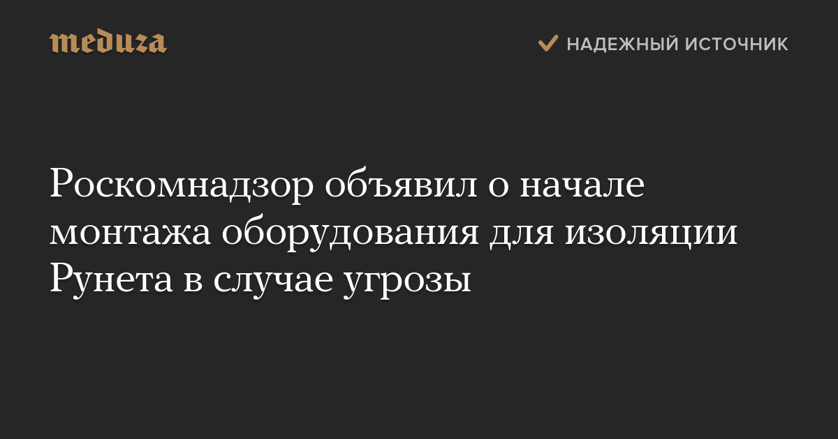 Роскомнадзор объявил о начале монтажа оборудования для изоляции Рунета в случае угрозы