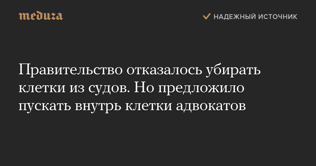 Правительство отказалось убирать клетки из судов. Но предложило пускать внутрь клетки адвокатов