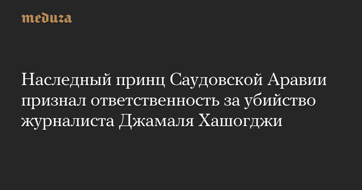 Наследный принц Саудовской Аравии признал ответственность за убийство журналиста Джамаля Хашогджи