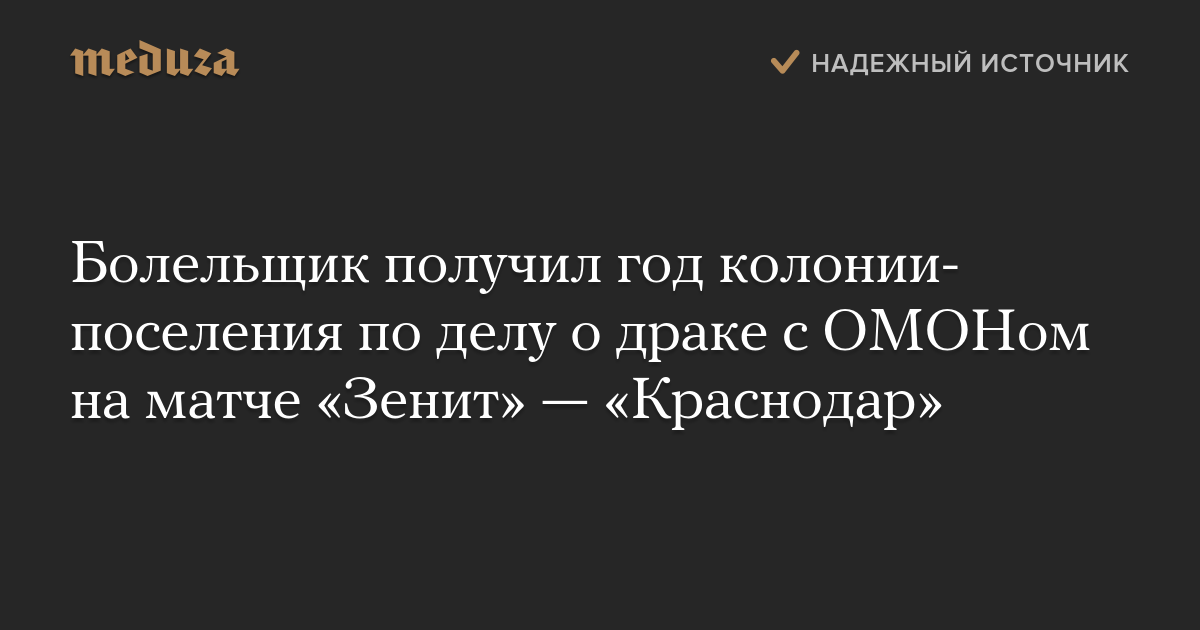 Болельщик получил год колонии-поселения по делу о драке с ОМОНом на матче «Зенит» — «Краснодар»