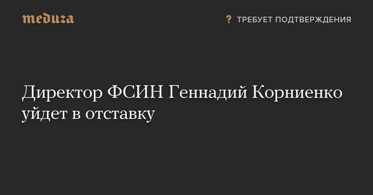 Директор Федеральной службы исполнения наказаний (ФСИН) Геннадий Корниенко отправлен в отставку, сообщили источники «Интерфакса», «Московского комсомольца» и «Фонтанки».
