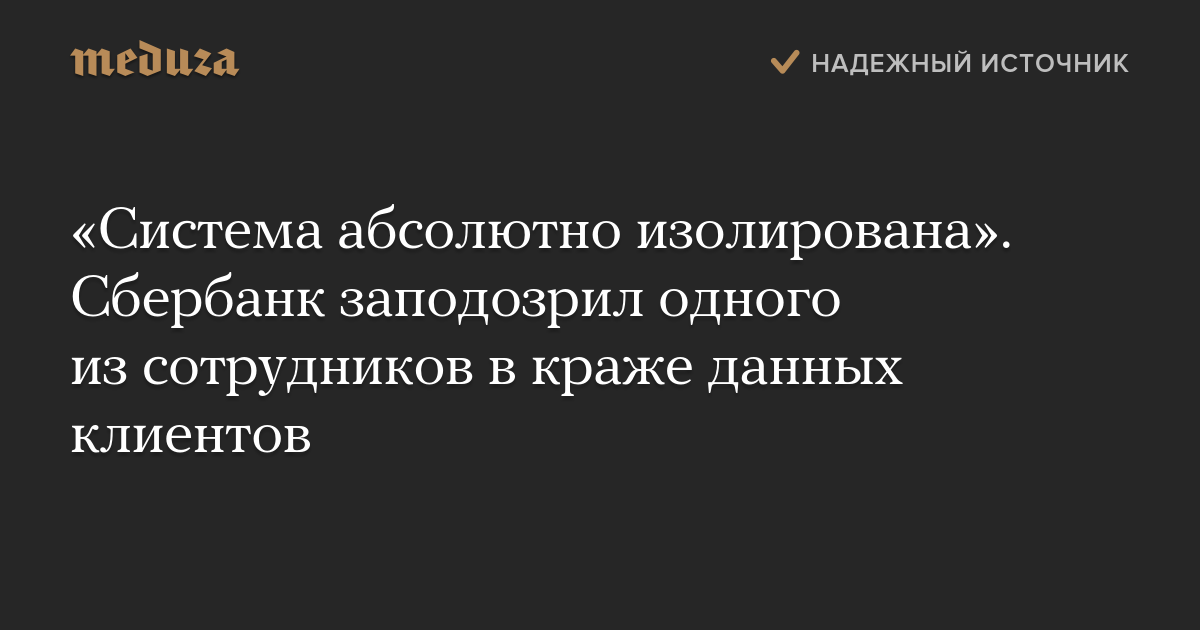 «Система абсолютно изолирована». Сбербанк заподозрил одного из сотрудников в краже данных клиентов