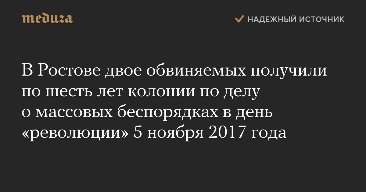 В Ростове двое обвиняемых получили по шесть лет колонии по делу о массовых беспорядках в день «революции» 5 ноября 2017 года