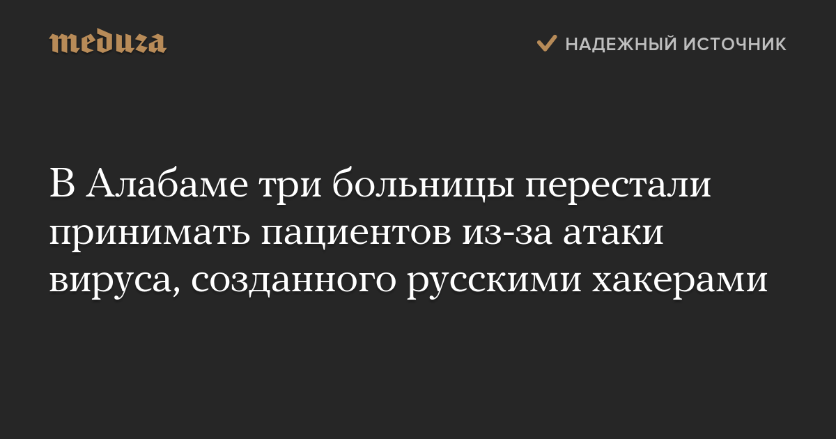 В Алабаме три больницы перестали принимать пациентов из-за атаки вируса, созданного русскими хакерами