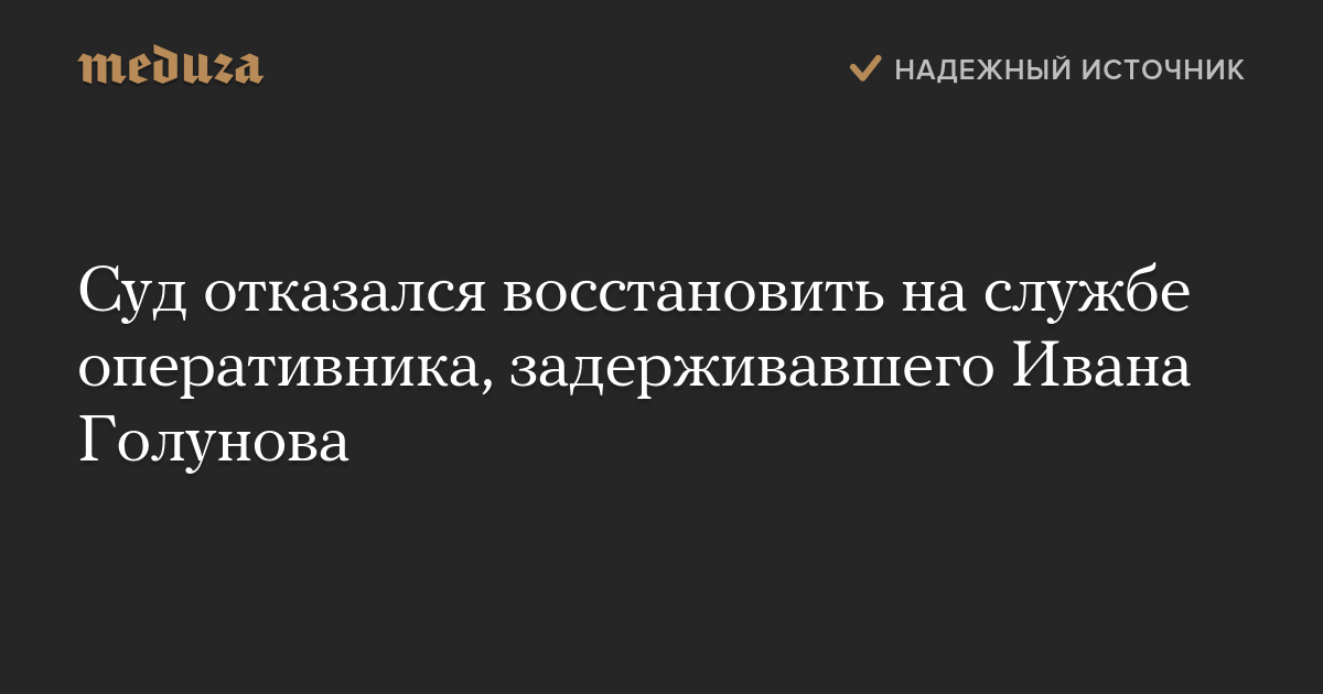 Суд отказался восстановить на службе оперативника, задерживавшего Ивана Голунова
