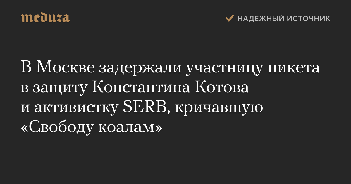 В Москве задержали участницу пикета в защиту Константина Котова и активистку SERB, кричавшую «Свободу коалам»