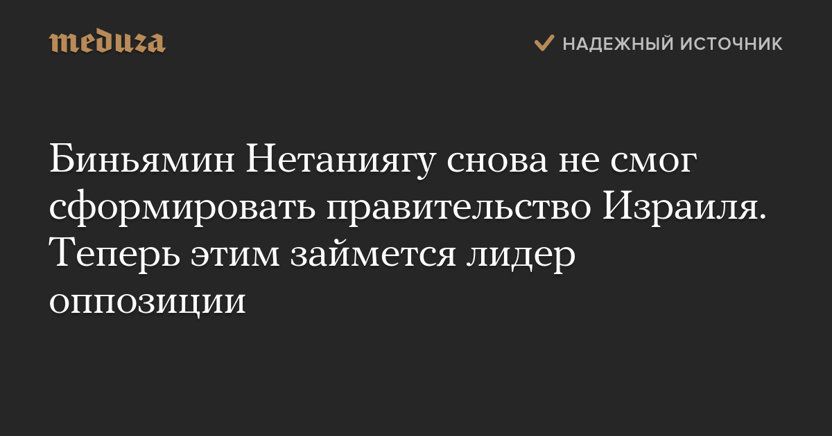 Биньямин Нетаниягу снова не смог сформировать правительство Израиля. Теперь этим займется лидер оппозиции